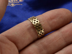 c1950 Link Pattern Gold Wedding Band (on finger for scale)