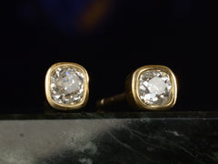 Our EB Modern stud earrings with c1850 old mine cut diamonds weighing a total of 0.79 carats set in 22K yellow gold bezels. On 18K yellow gold posts with 18K backs. Handmade in New York.